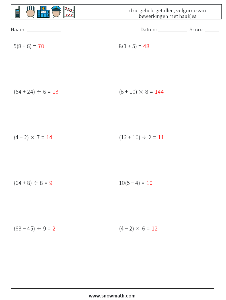 (10) drie gehele getallen, volgorde van bewerkingen met haakjes