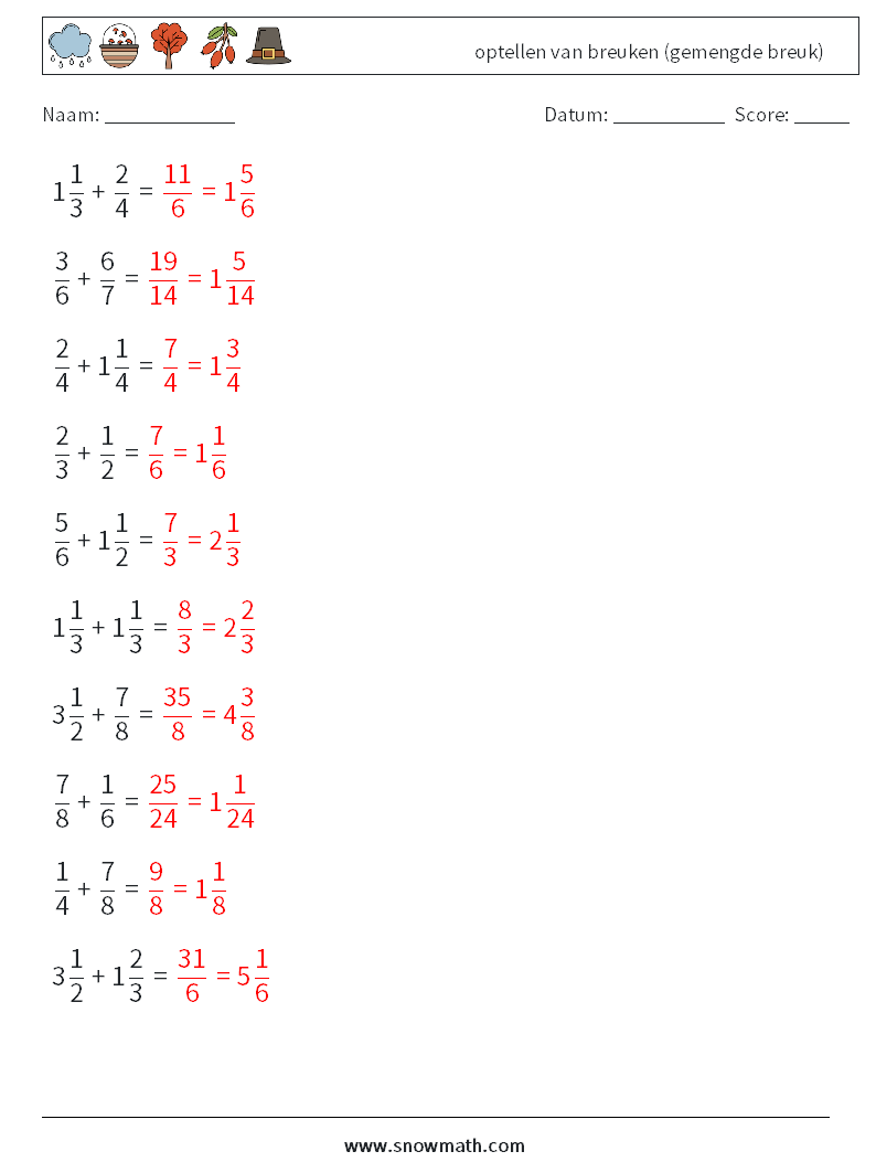 (10) optellen van breuken (gemengde breuk)