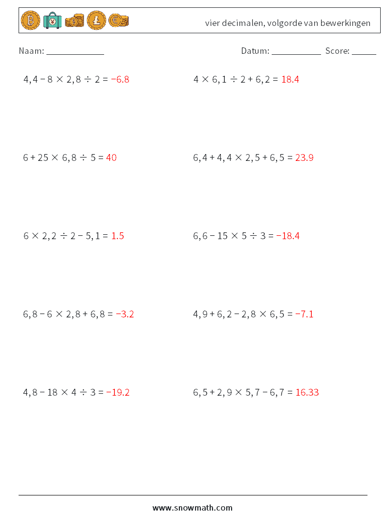 (10) vier decimalen, volgorde van bewerkingen