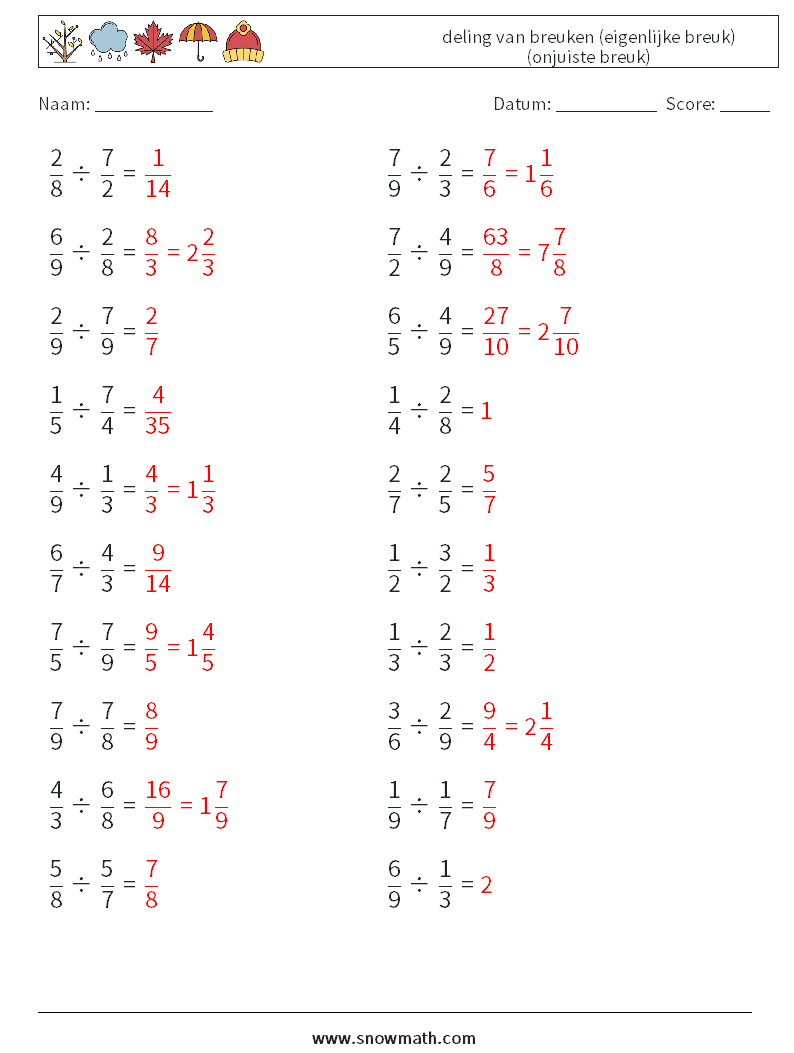 (20) deling van breuken (eigenlijke breuk) (onjuiste breuk)