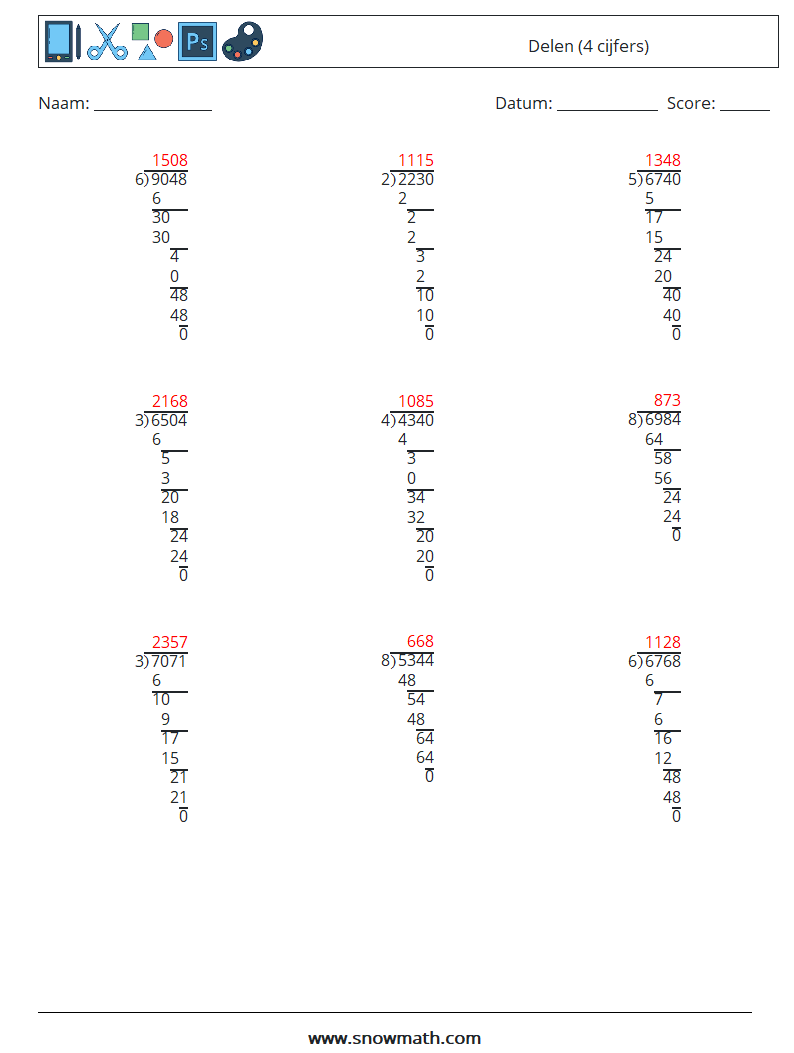 (9) Delen (4 cijfers)