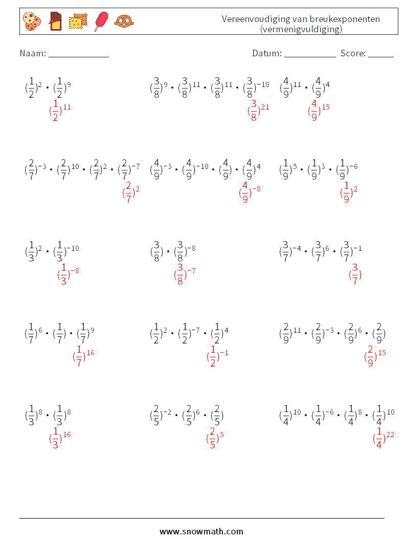 Vereenvoudiging van breukexponenten (vermenigvuldiging)