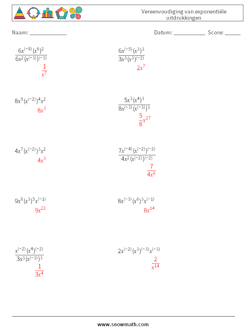 Vereenvoudiging van exponentiële uitdrukkingen