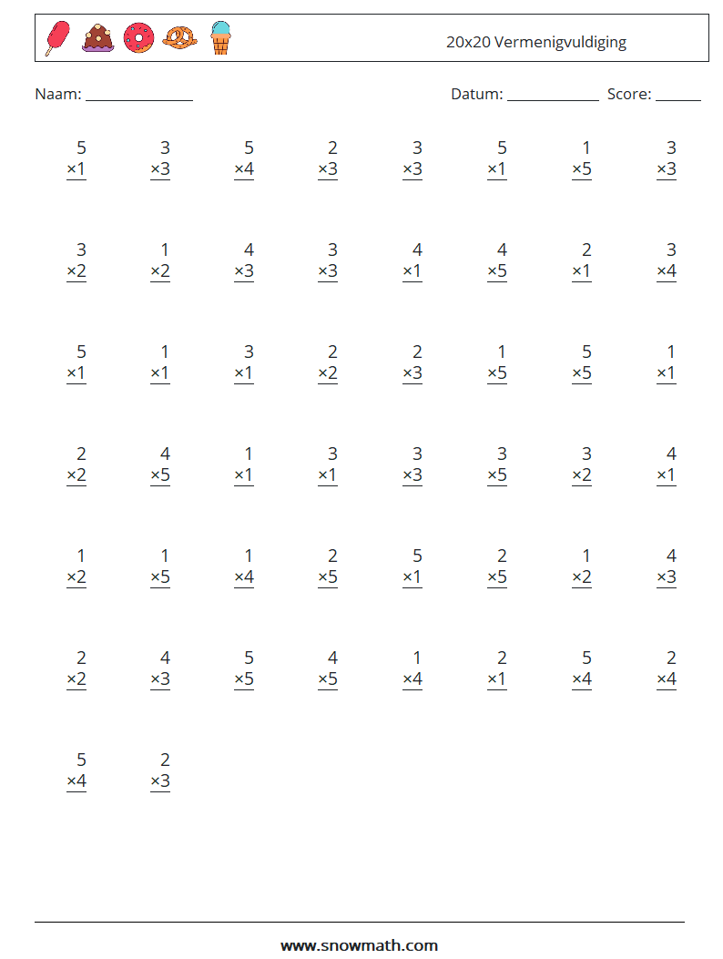 (50) 20x20 Vermenigvuldiging Wiskundige werkbladen 15