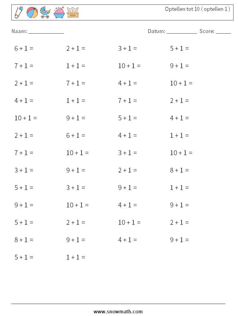 (50) Optellen tot 10 ( optellen 1 ) Wiskundige werkbladen 7