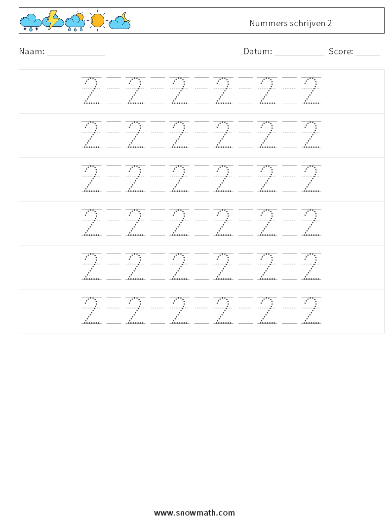 Nummers schrijven 2 Wiskundige werkbladen 16
