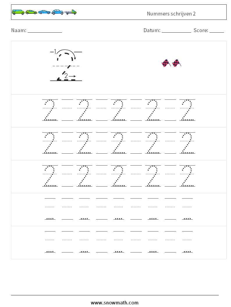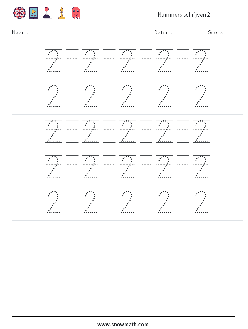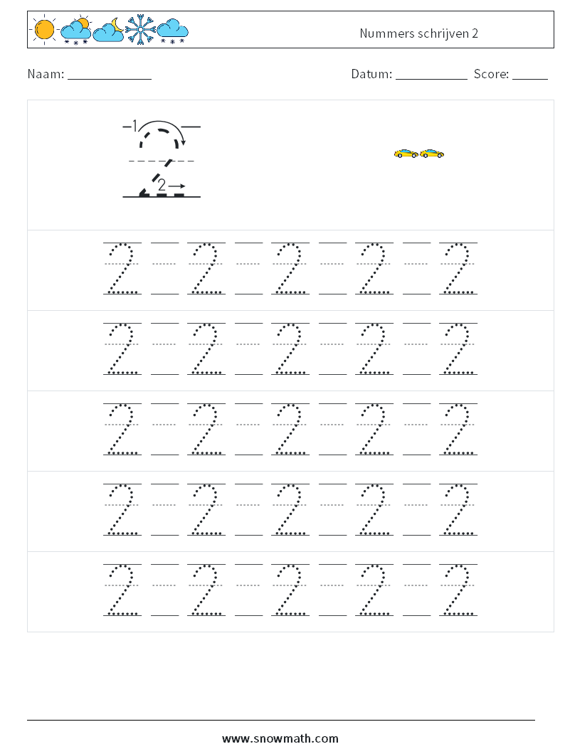 Nummers schrijven 2 Wiskundige werkbladen 22