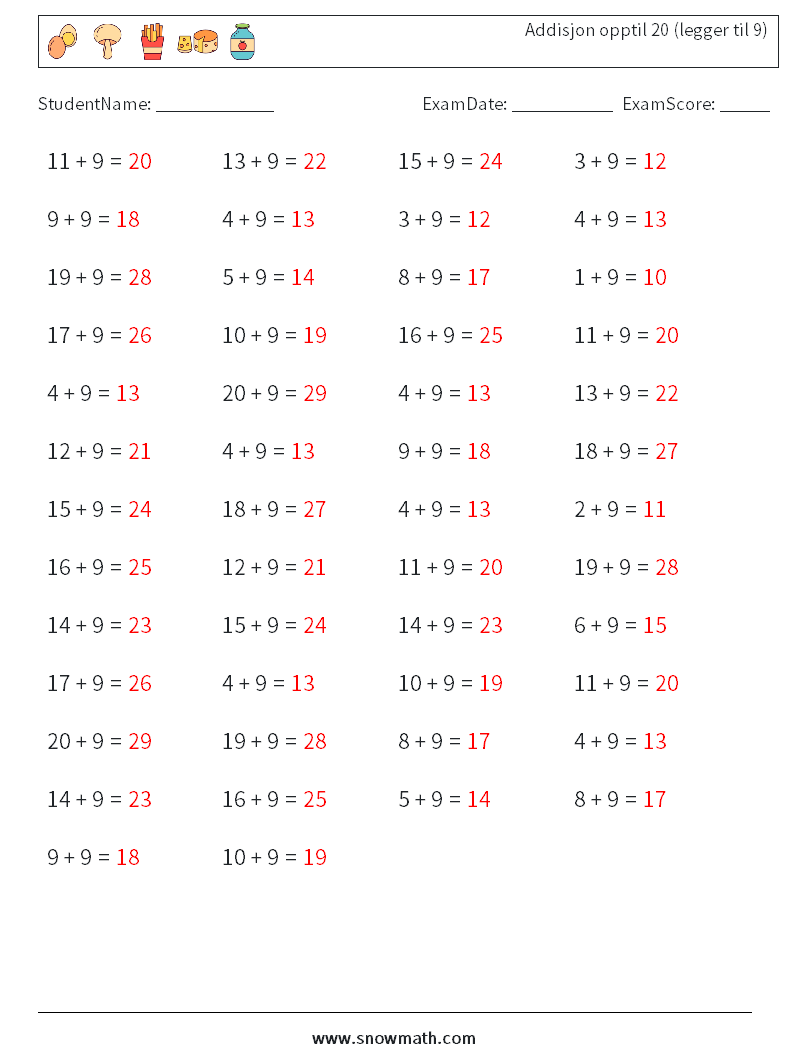 (50) Addisjon opptil 20 (legger til 9)
