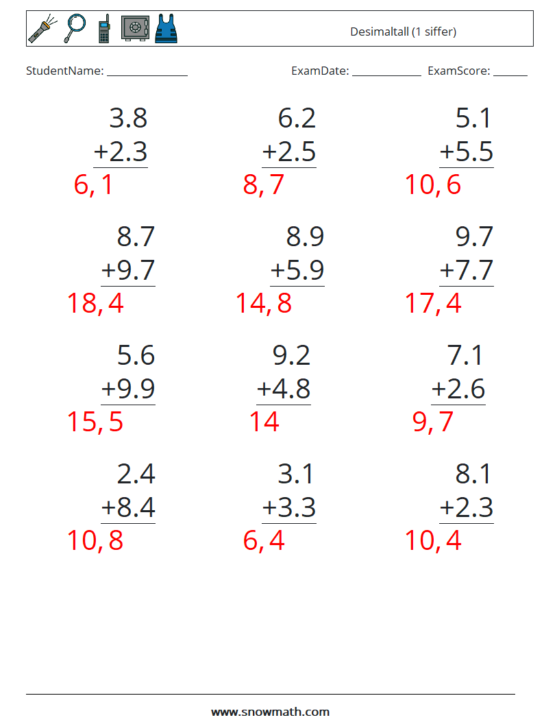 (12) Desimaltall (1 siffer)