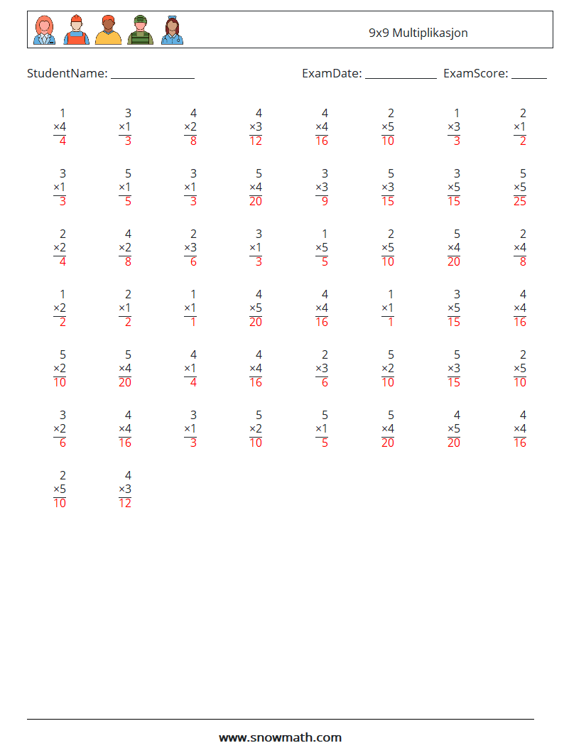 (50) 9x9 Multiplikasjon