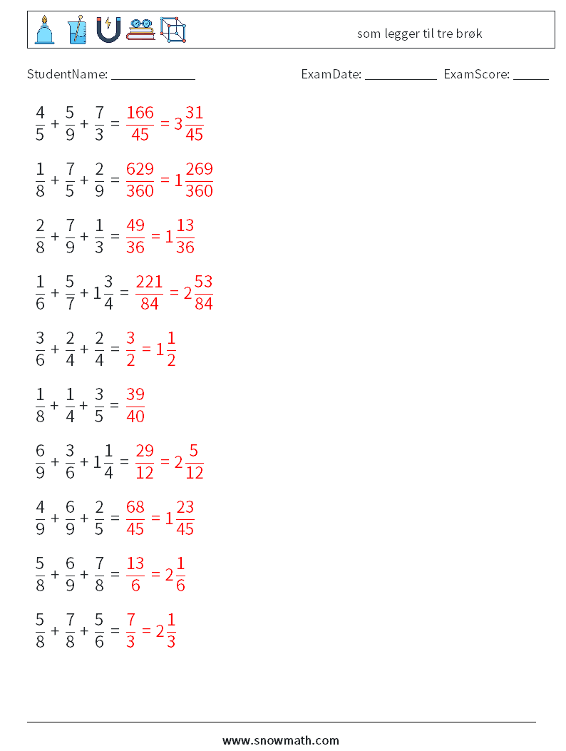 (10) som legger til tre brøk