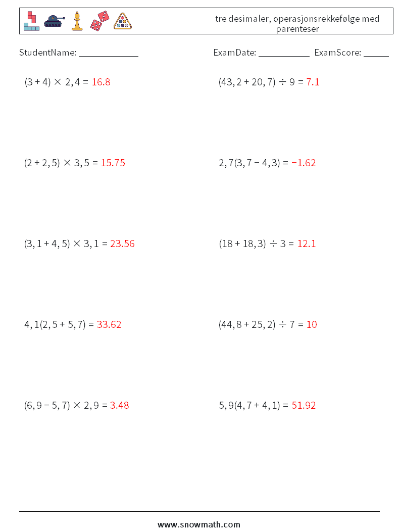 (10) tre desimaler, operasjonsrekkefølge med parenteser