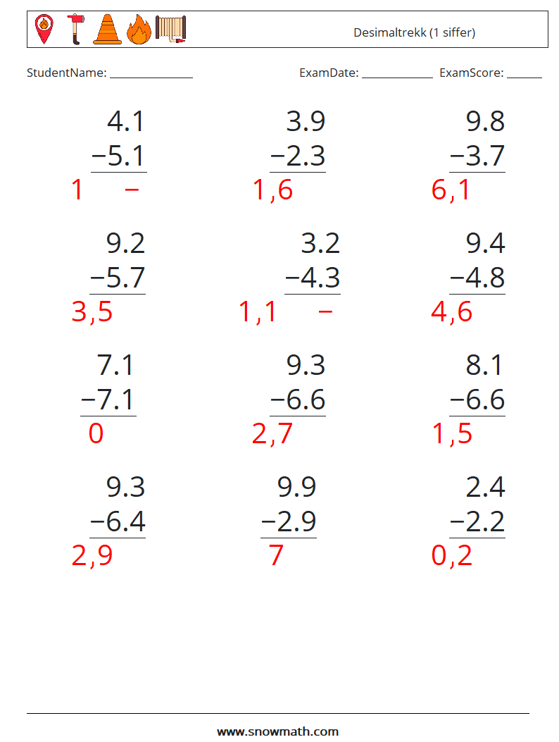 Desimaler Subtraksjon