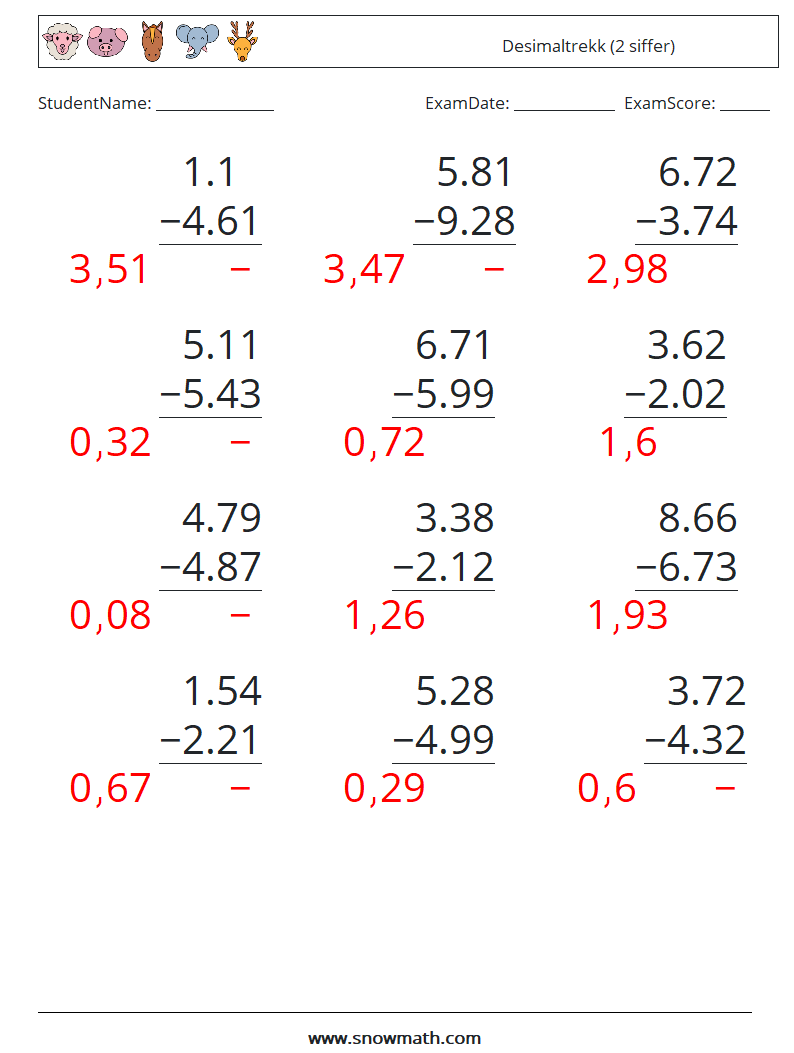Desimaler Subtraksjon