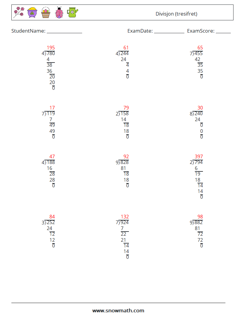 (12) Divisjon (tresifret)