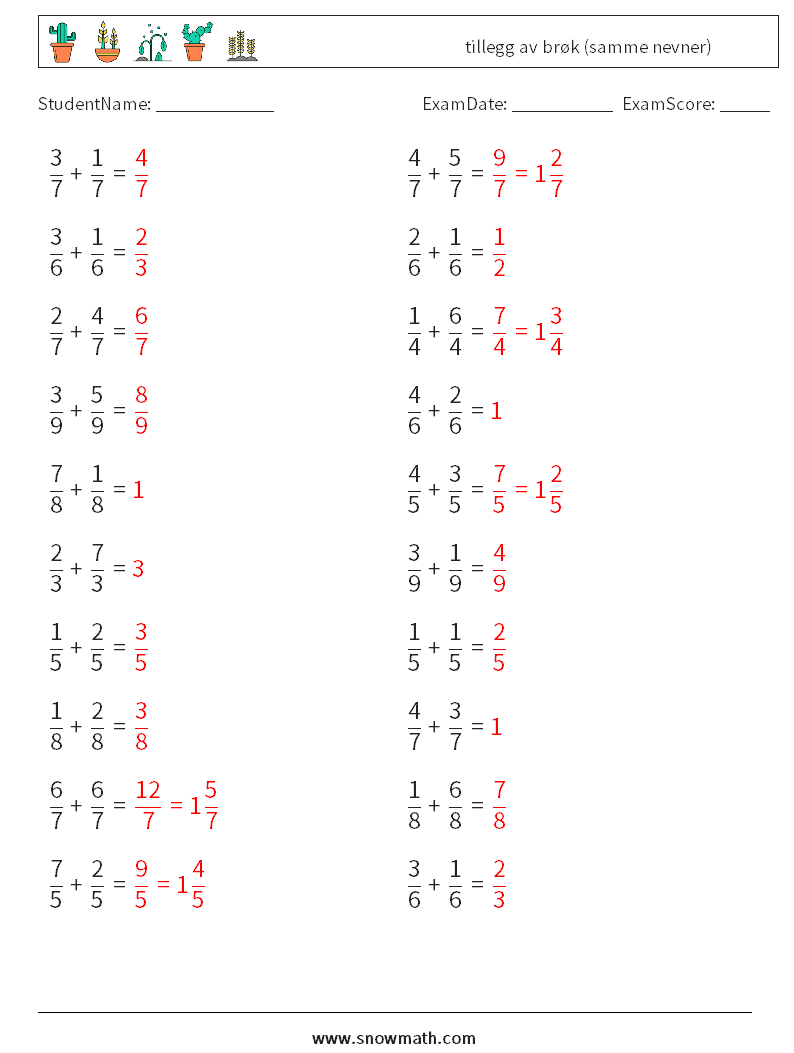 (20) tillegg av brøk (samme nevner)