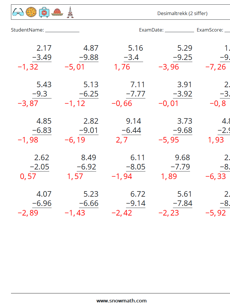 Desimaler Subtraksjon