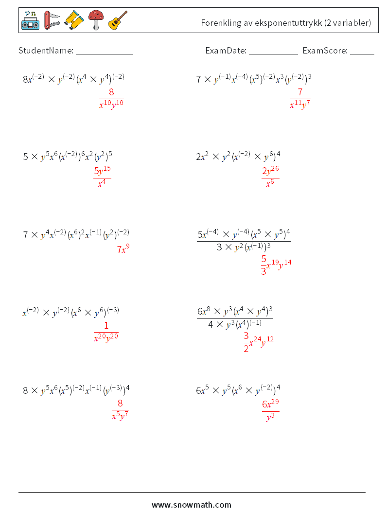 Forenkling av eksponentuttrykk (2 variabler)