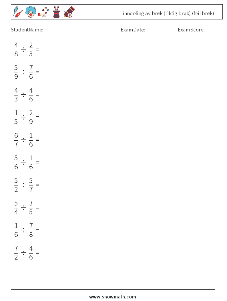 (10) inndeling av brøk (riktig brøk) (feil brøk) MathWorksheets 1