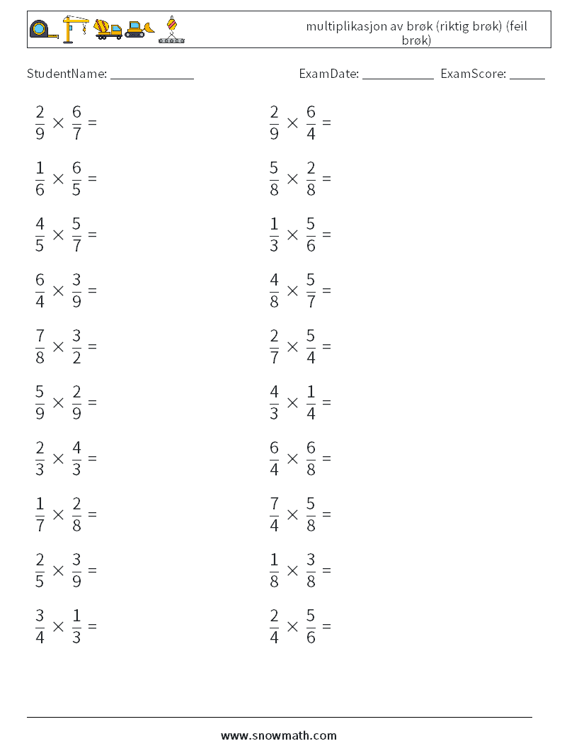(20) multiplikasjon av brøk (riktig brøk) (feil brøk) MathWorksheets 1
