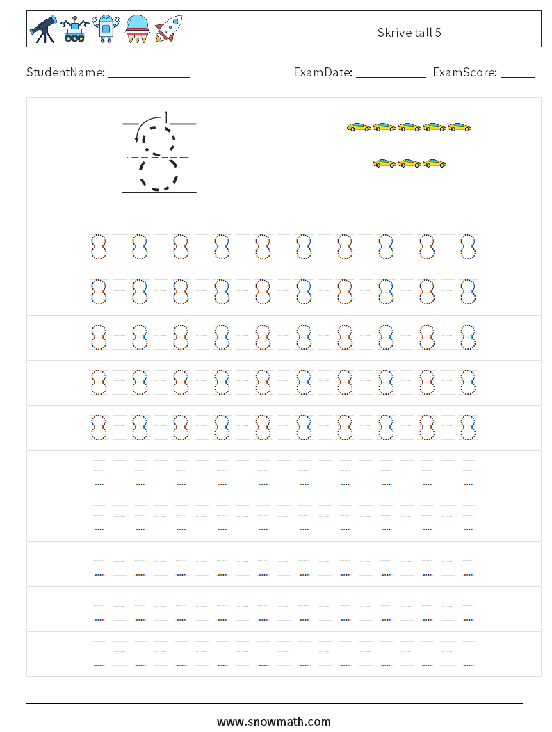 Lær hvordan du skriver nummer 8, utskrivbare regneark for barn.