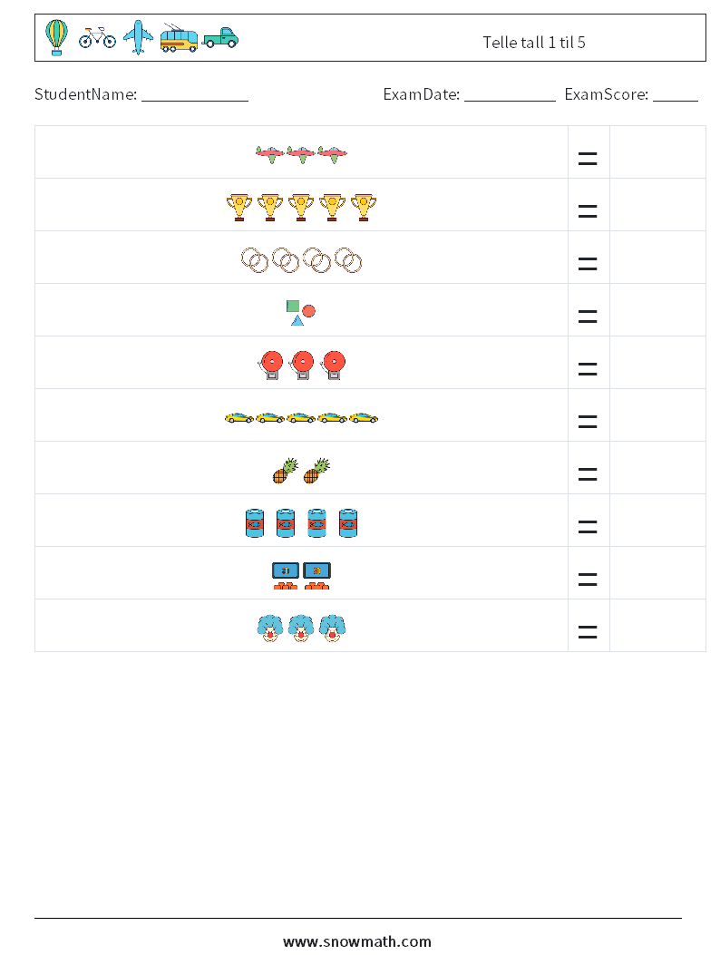 Telle tall 1 til 5 MathWorksheets 8