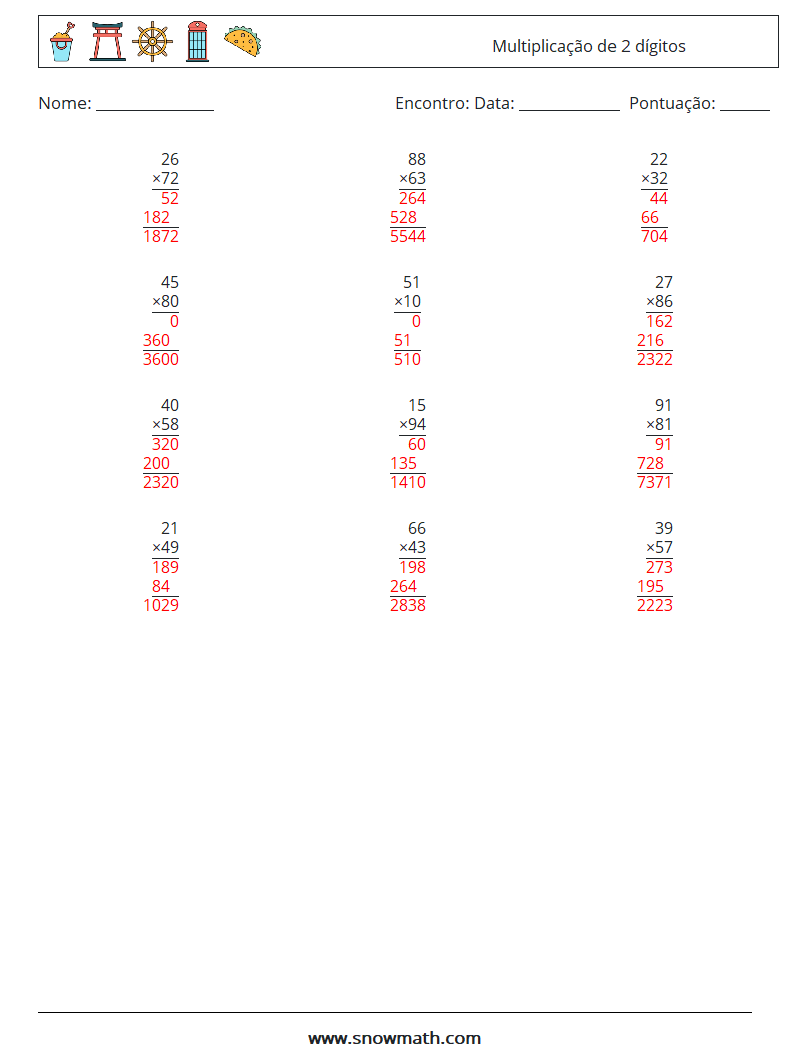(12) Multiplicação de 2 dígitos