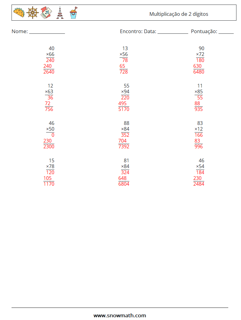 (12) Multiplicação de 2 dígitos
