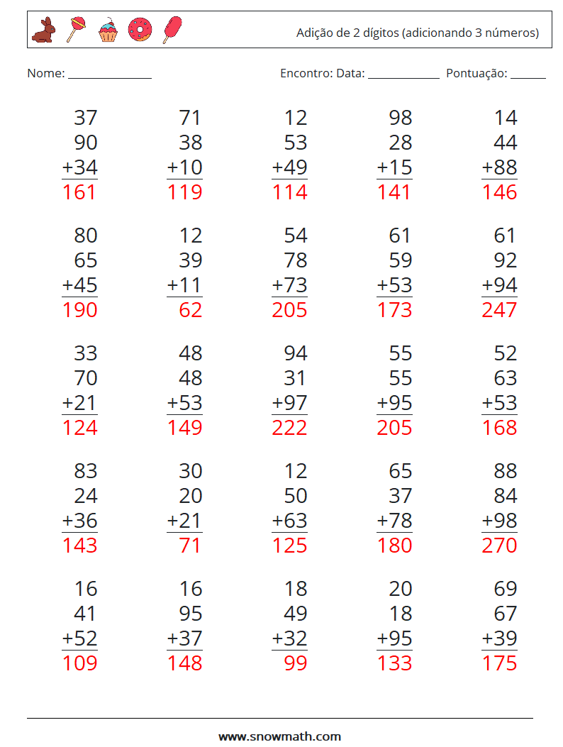 (25) Adição de 2 dígitos (adicionando 3 números)