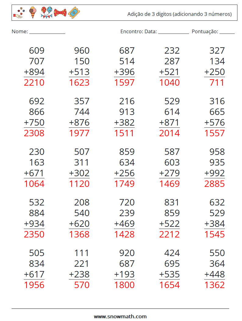 (25) Adição de 3 dígitos (adicionando 3 números)