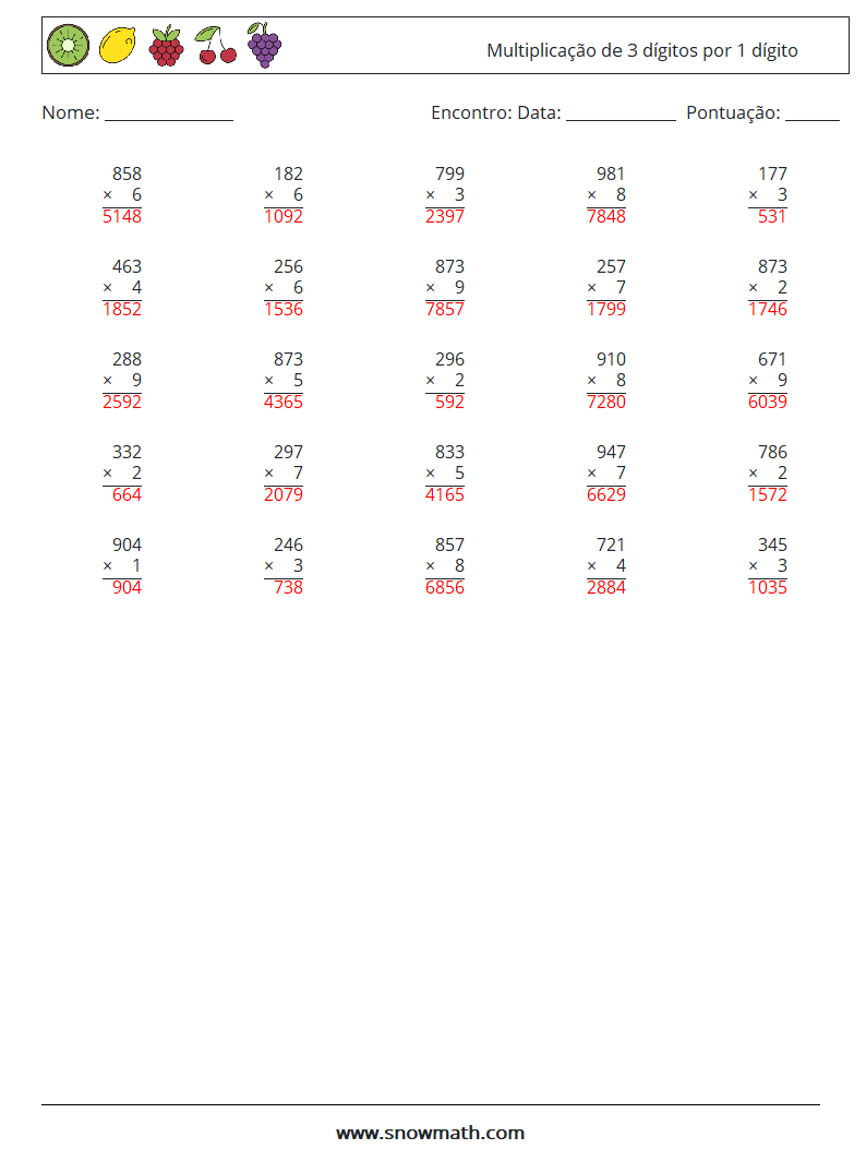 (25) Multiplicação de 3 dígitos por 1 dígito
