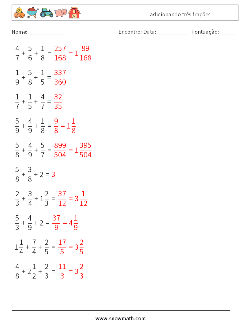 (10) adicionando três frações