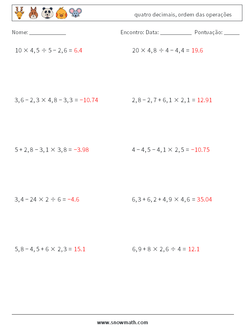 (10) quatro decimais, ordem das operações