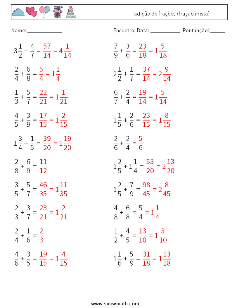 (20) adição de frações (fração mista)