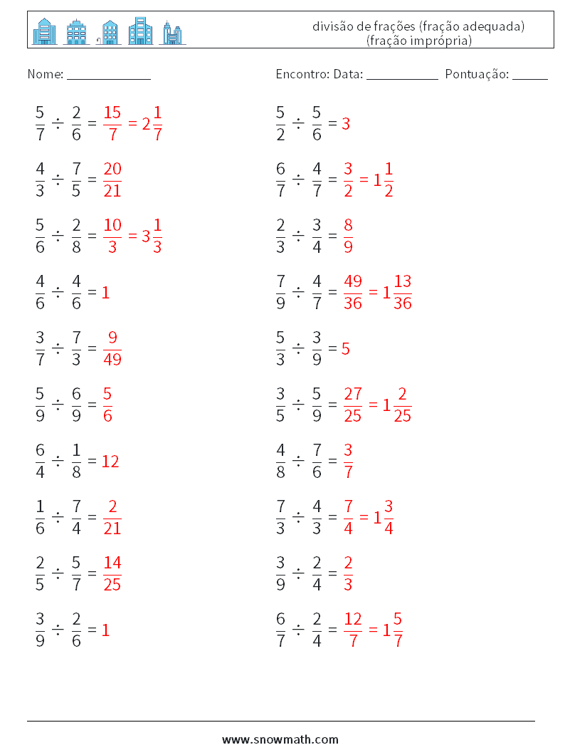 (20) divisão de frações (fração adequada) (fração imprópria)