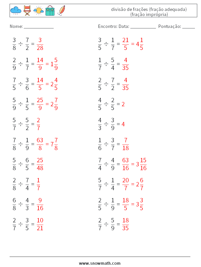 (20) divisão de frações (fração adequada) (fração imprópria)