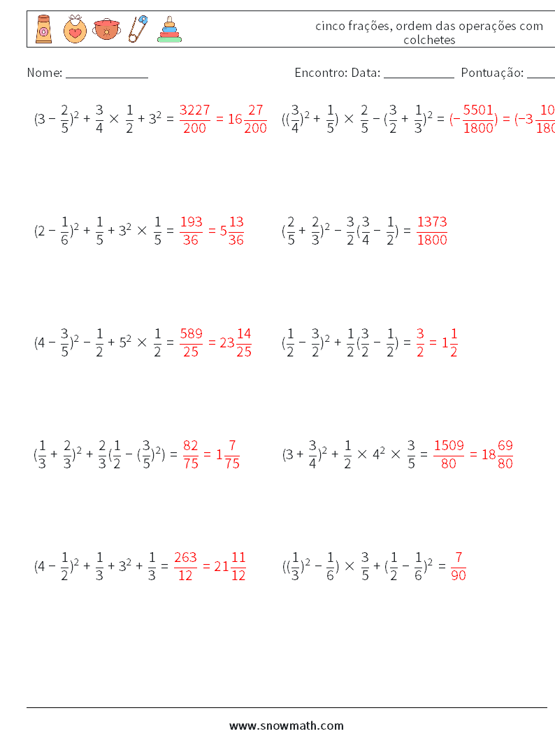 (10) cinco frações, ordem das operações com colchetes