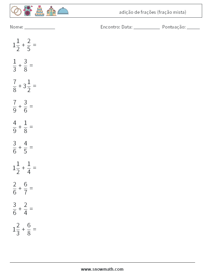 (10) adição de frações (fração mista) planilhas matemáticas 10