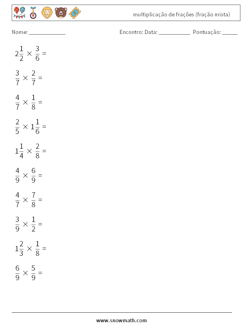 (10) multiplicação de frações (fração mista) planilhas matemáticas 9