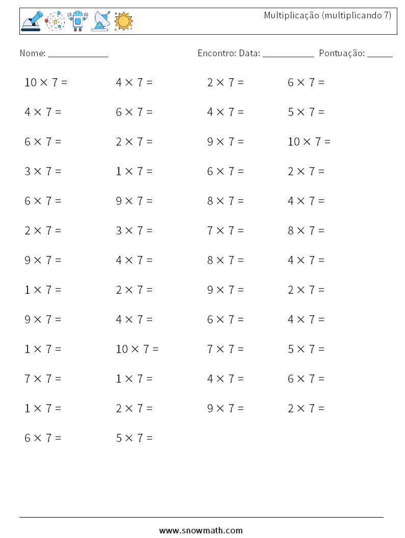 (50) Multiplicação (multiplicando 7) planilhas matemáticas 6