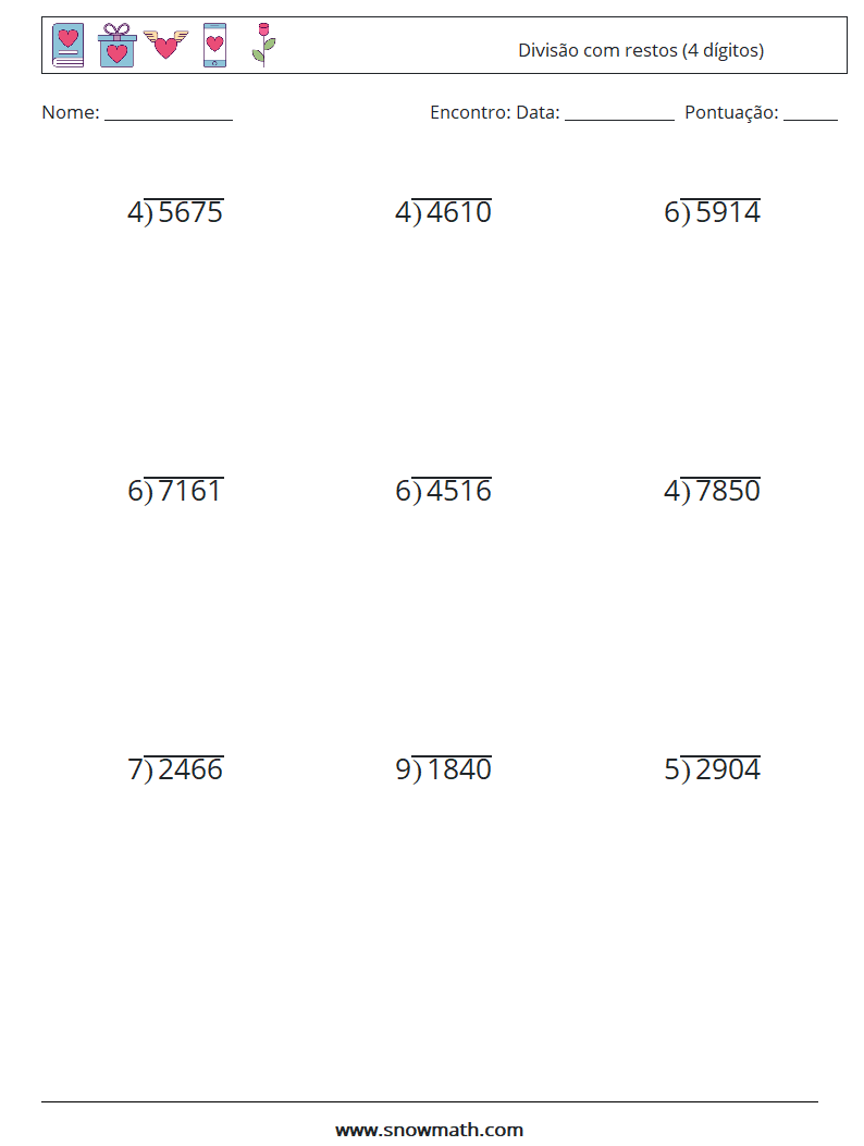 (9) Divisão com restos (4 dígitos) planilhas matemáticas 4