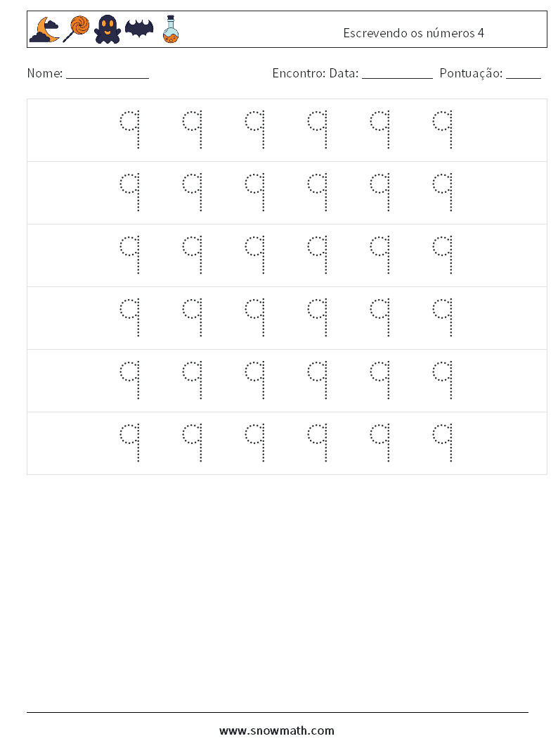 Escrevendo os números 4 planilhas matemáticas 4