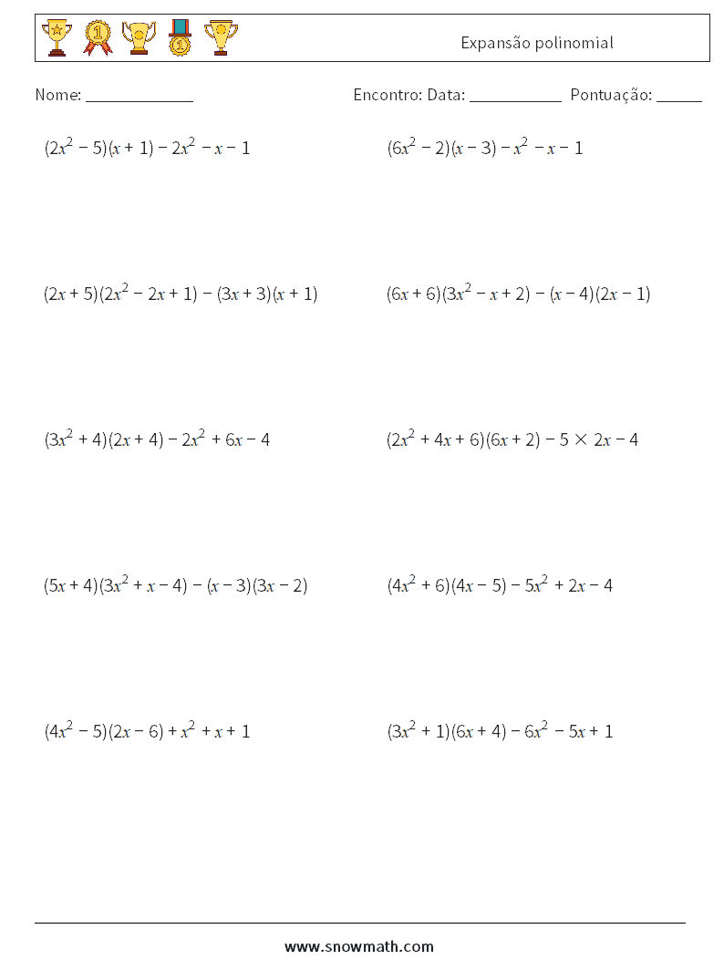 Expansão de uma expressão polinomial, planilhas de matemática gratuitas.