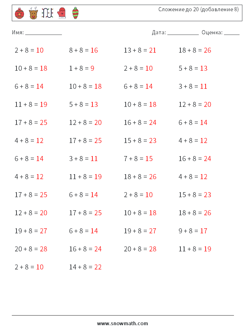 (50) Сложение до 20 (добавление 8)