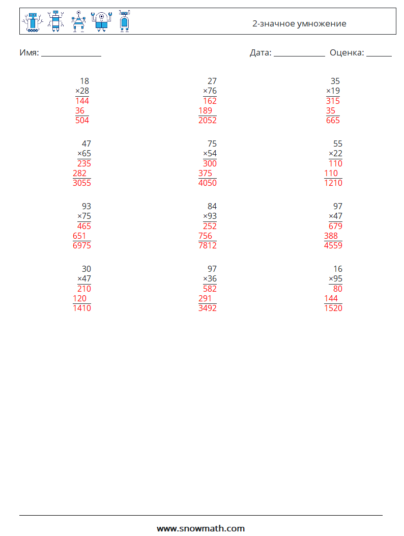 (12) 2-значное умножение