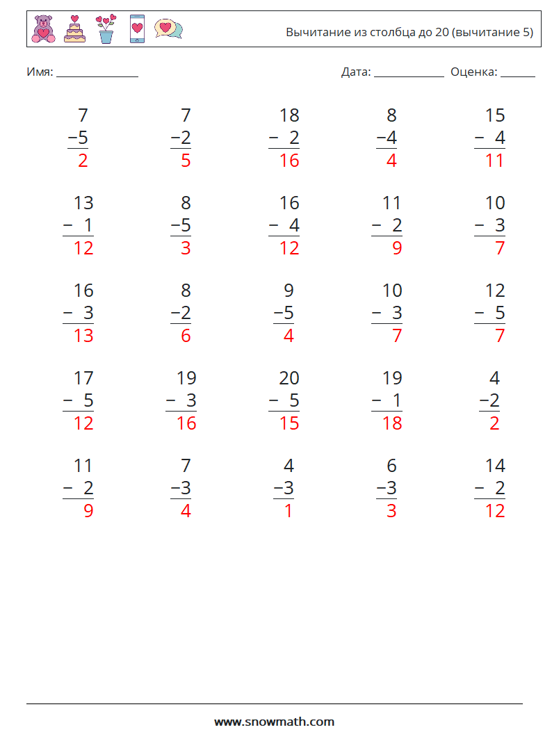 (25) Вычитание из столбца до 20 (вычитание 5)