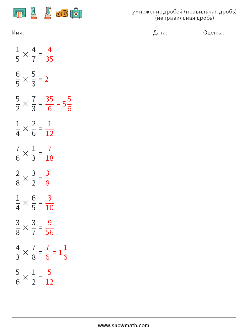 (10) умножение дробей (правильная дробь) (неправильная дробь)