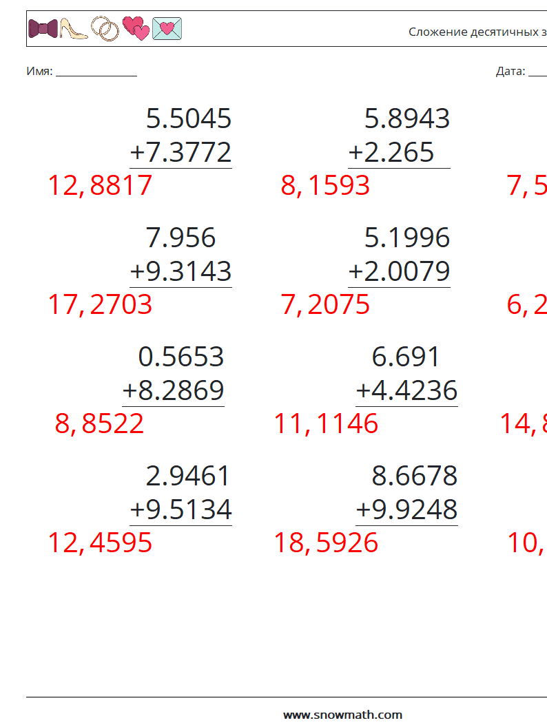 (12) Сложение десятичных знаков (4 цифры)