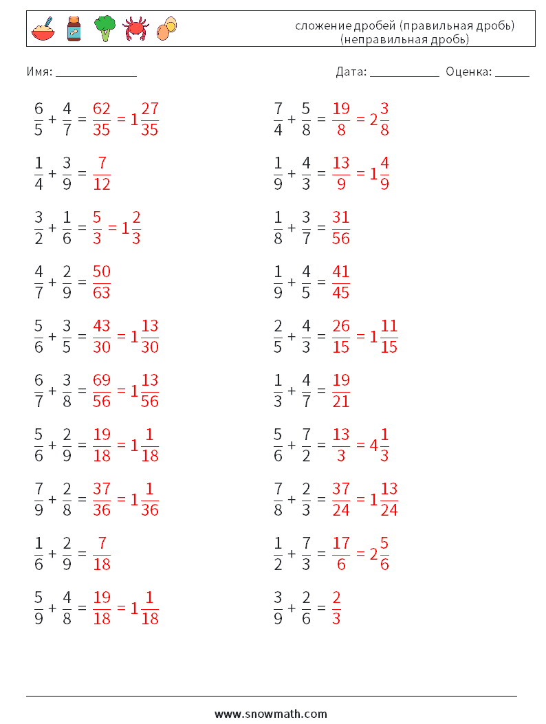 (20) сложение дробей (правильная дробь) (неправильная дробь)