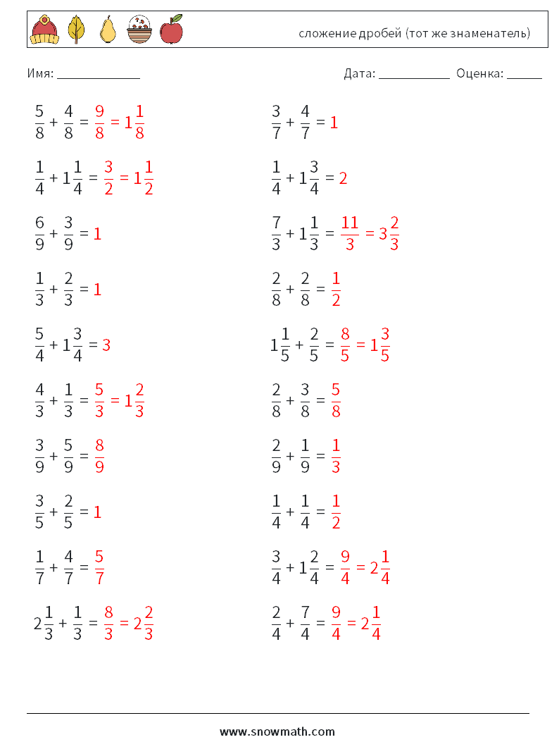 (20) сложение дробей (тот же знаменатель)
